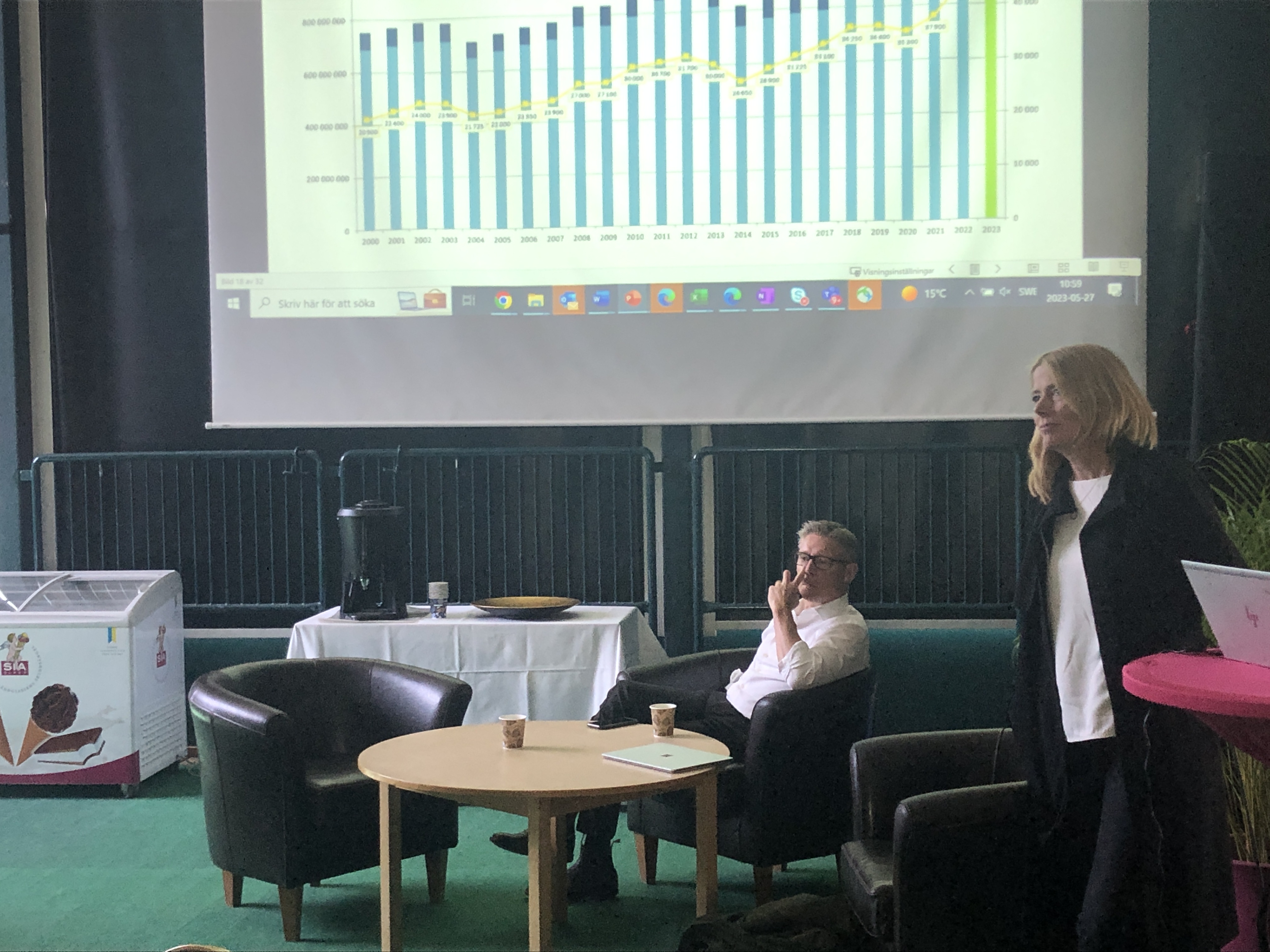 Givetvis avhandlades också närtidssituationen med att ATG:s hästspelintäkter minskar. En historisk situation, enligt Hasse Lord Skarplöth, för första gången är det tydligt att en lågkonjunktur slår rakt ut på ATG:s spelintäkter. Tappet på hästspelet första kvartalet 2023 var hiskeliga tolv procent.